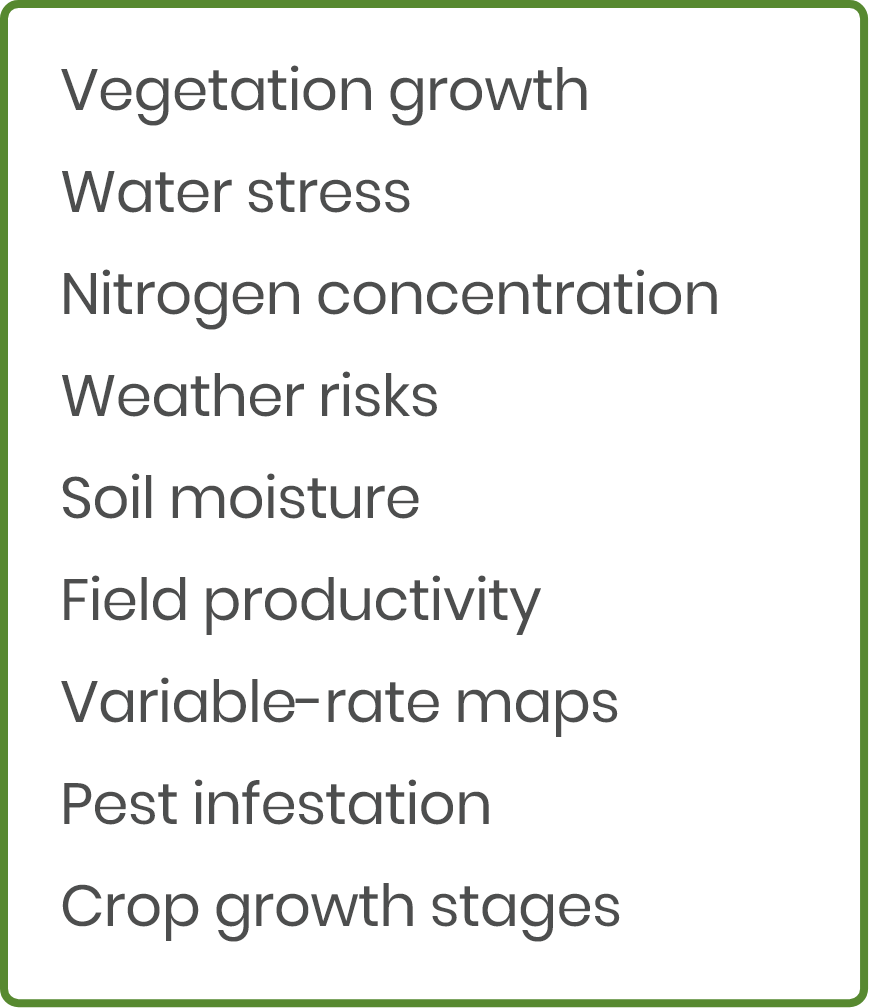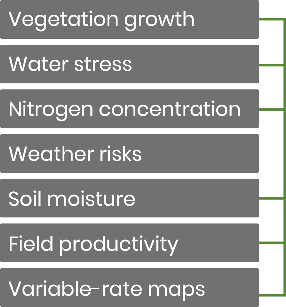 Crop Map based on large amount of processing satellite and climate data, we provide analytical reports and detailed datasets for crop monitoring: